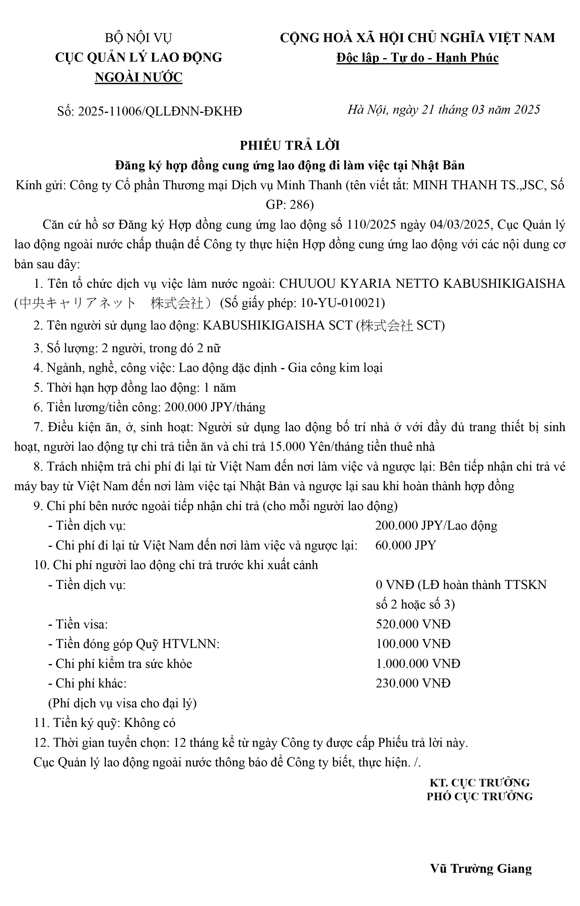 Hợp đồng cung ứng lao động đi làm việc tại Nhật Bản – MT4195