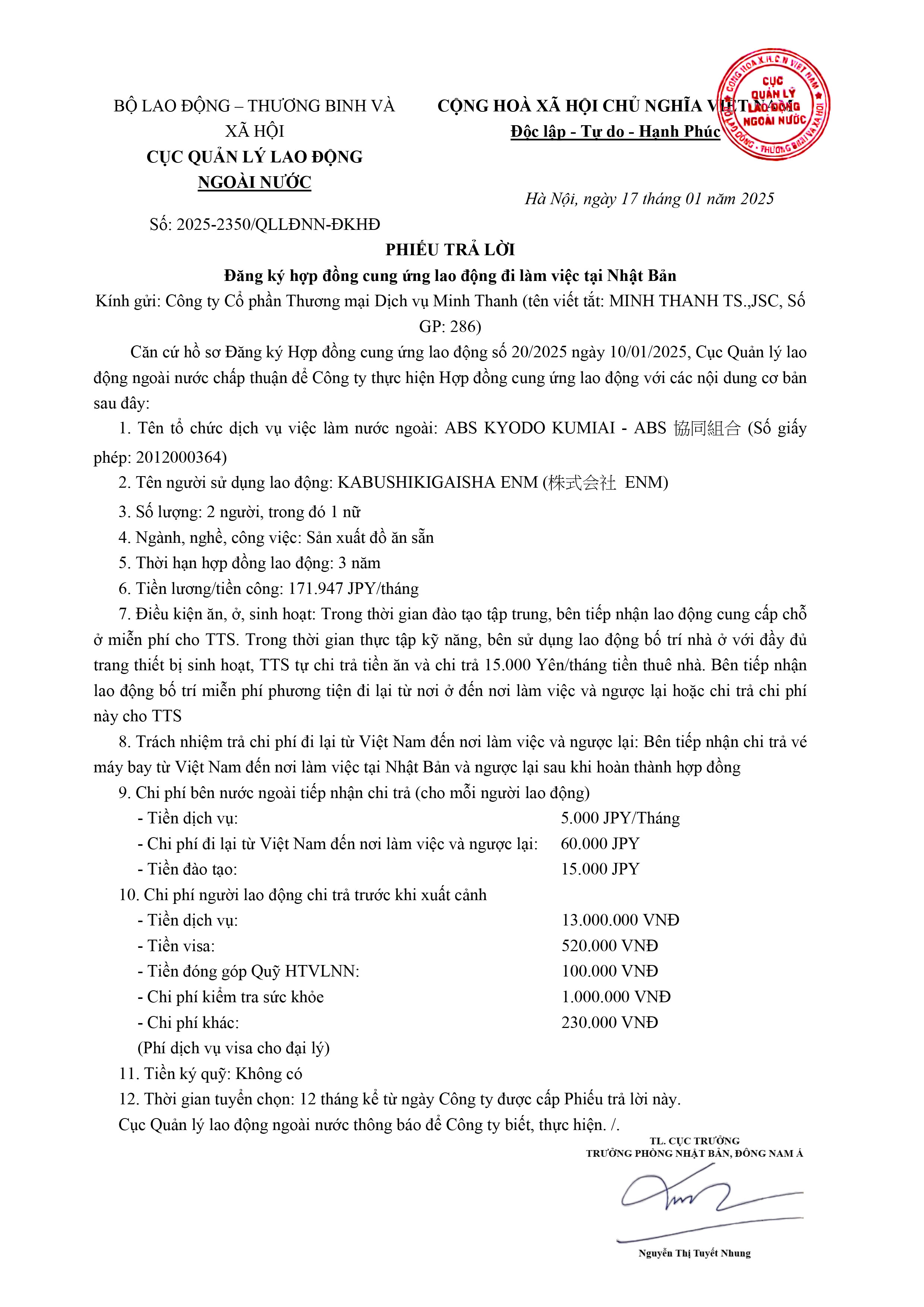 Hợp đồng cung ứng lao động đi làm việc tại Nhật Bản – MT4324