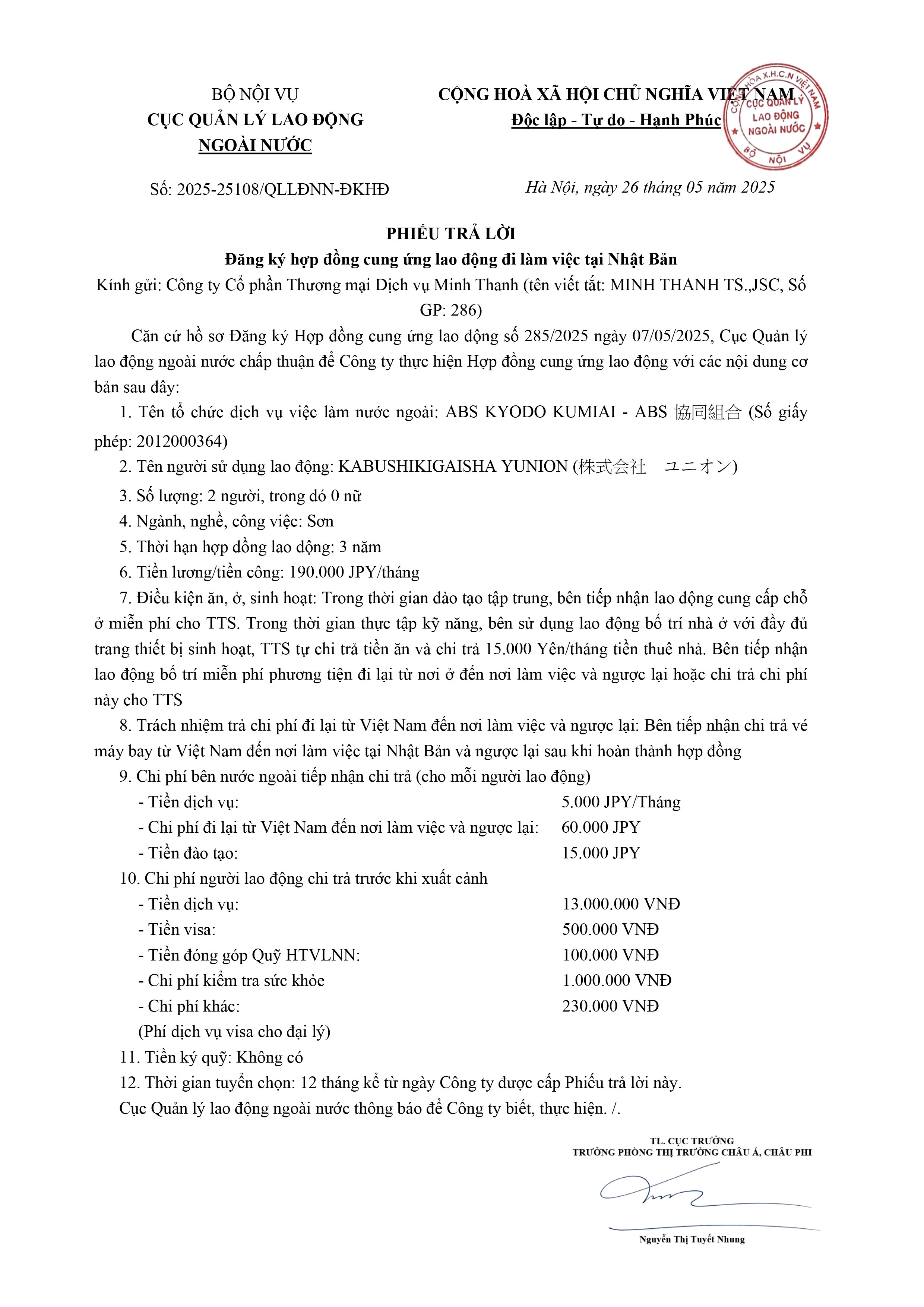 Hợp đồng cung ứng lao động đi làm việc tại Nhật Bản – MT4455