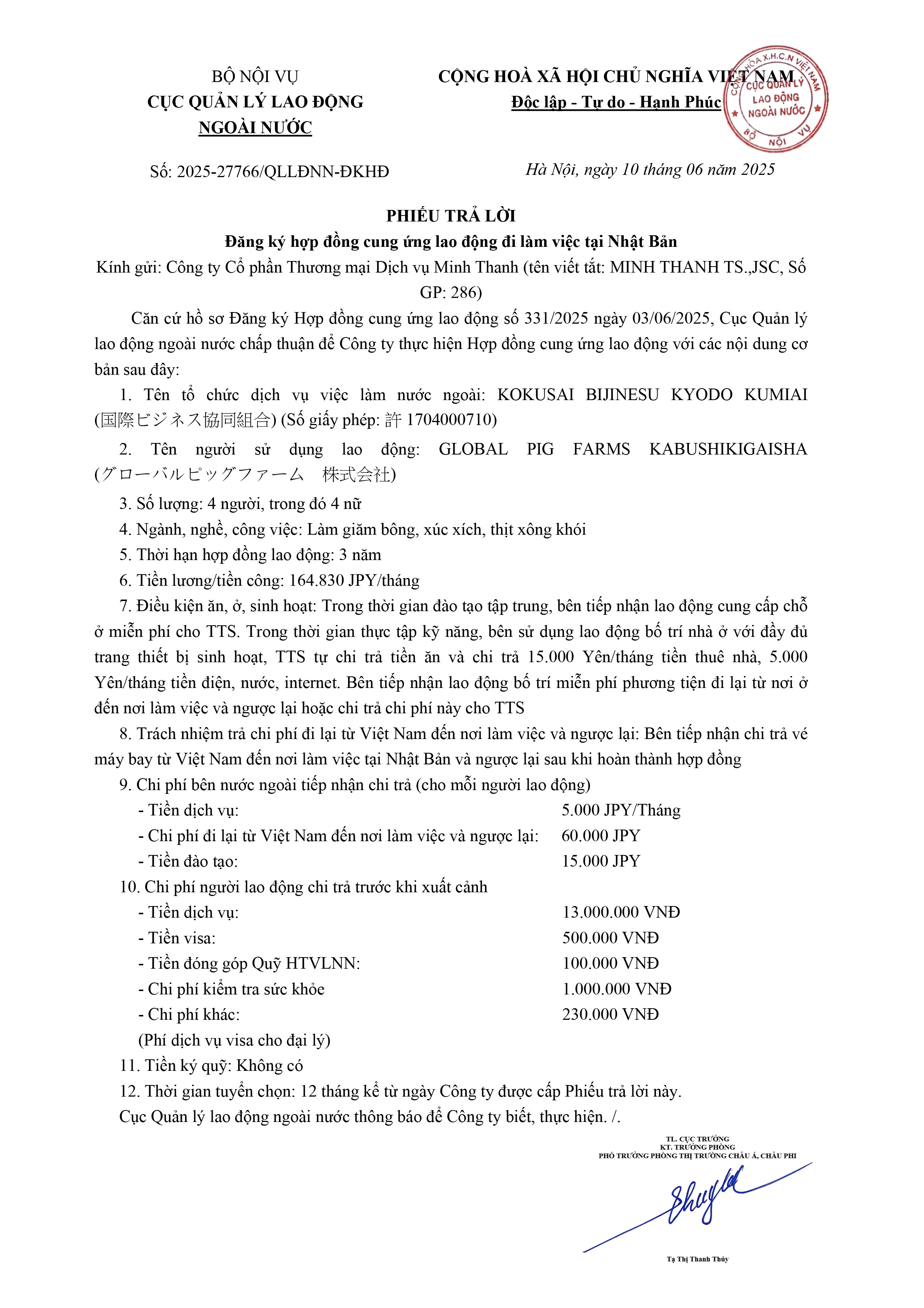 Hợp đồng cung ứng lao động đi làm việc tại Nhật Bản – MT4499